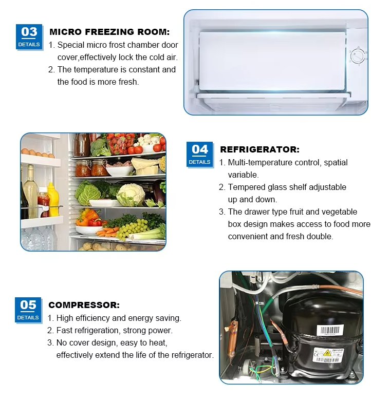 Flexible storage: Multi-layered shelves, spacious drawers and door rack storage compartments can be flexibly adjusted according to the size and shape of different ingredients, maximizing the utilization of every inch of space.